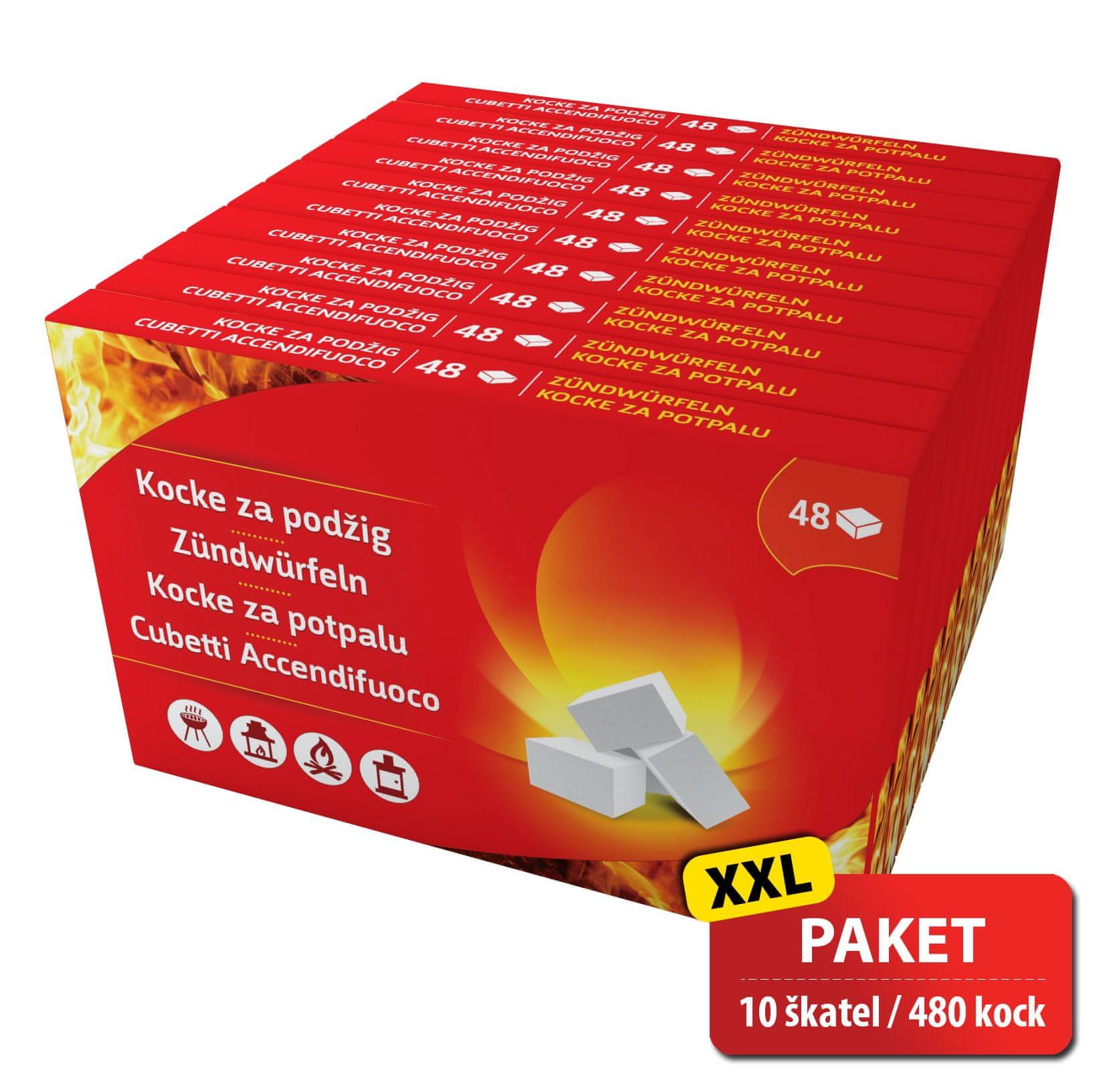 Svaka kocka gori snažnim plamenom nekoliko minuta i omogućuje pouzdano paljenje čak i u zahtjevnijim uvjetima.